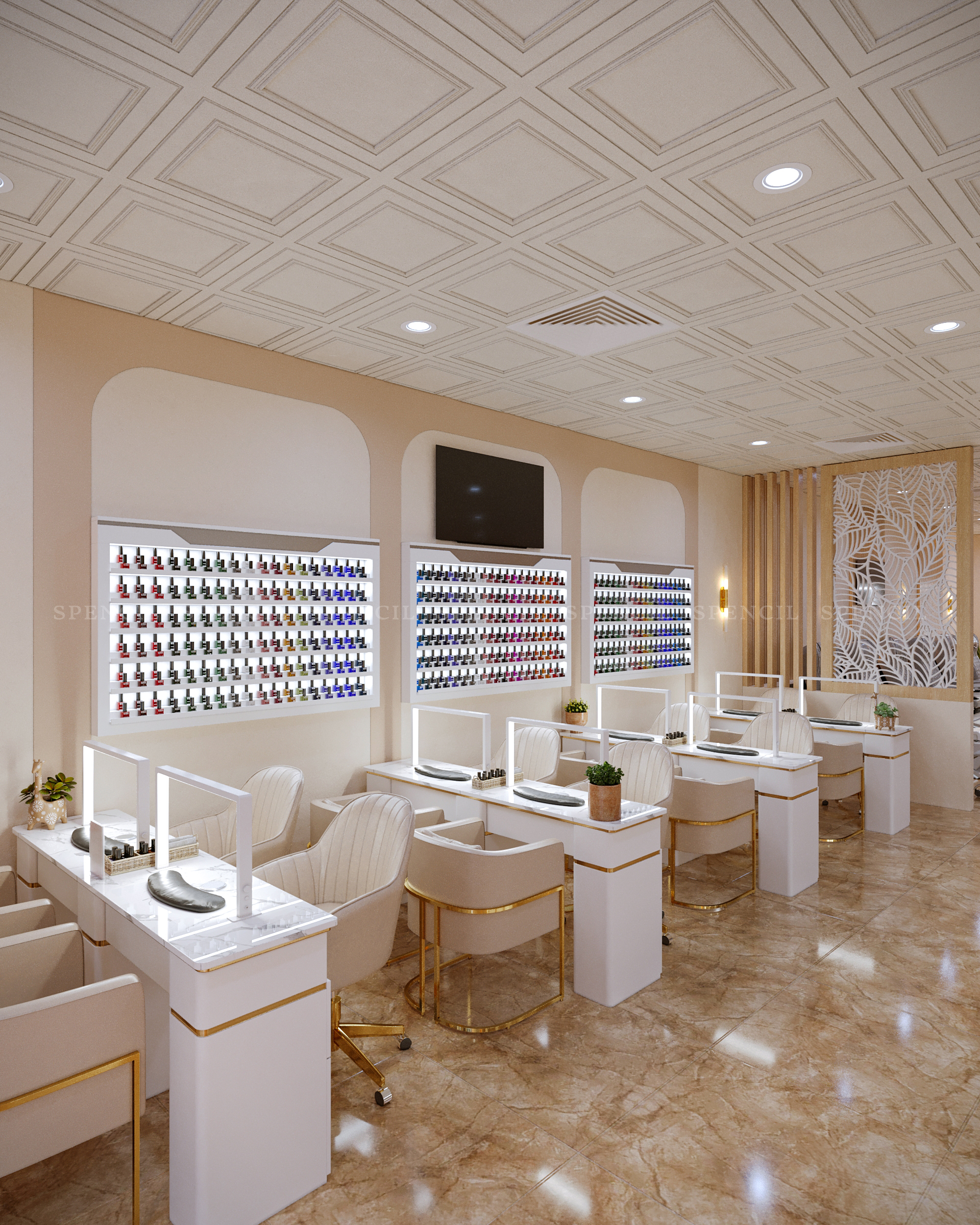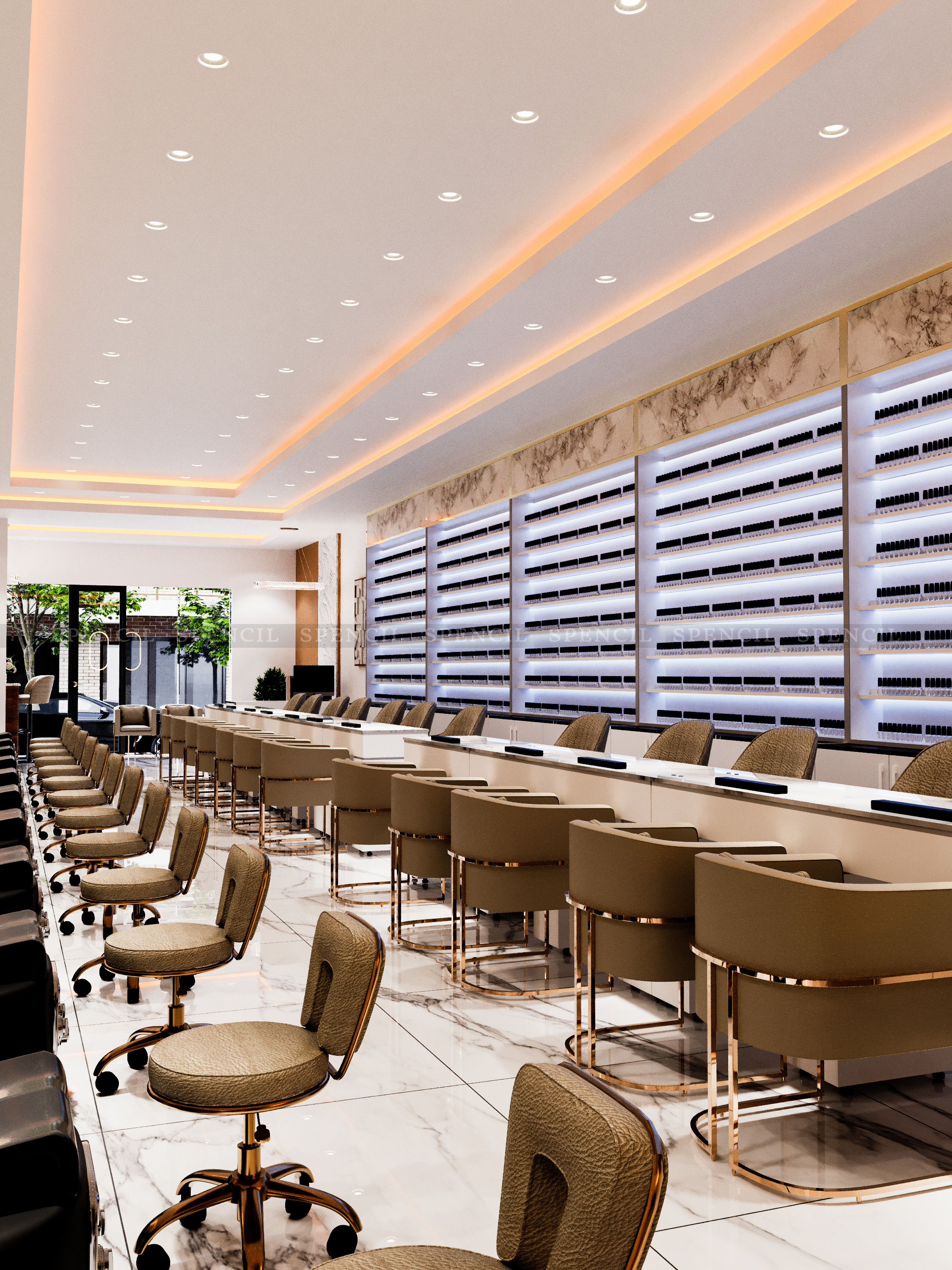 Một tiệm nail giá tốt không có nghĩa là kém sang. Mỗi góc nhỏ – từ quầy reception, khu pedicure đến tường decor, đều có thể trở thành “signature spot” để khách check-in và chia sẻ, giúp thương hiệu lan tỏa mạnh mẽ.