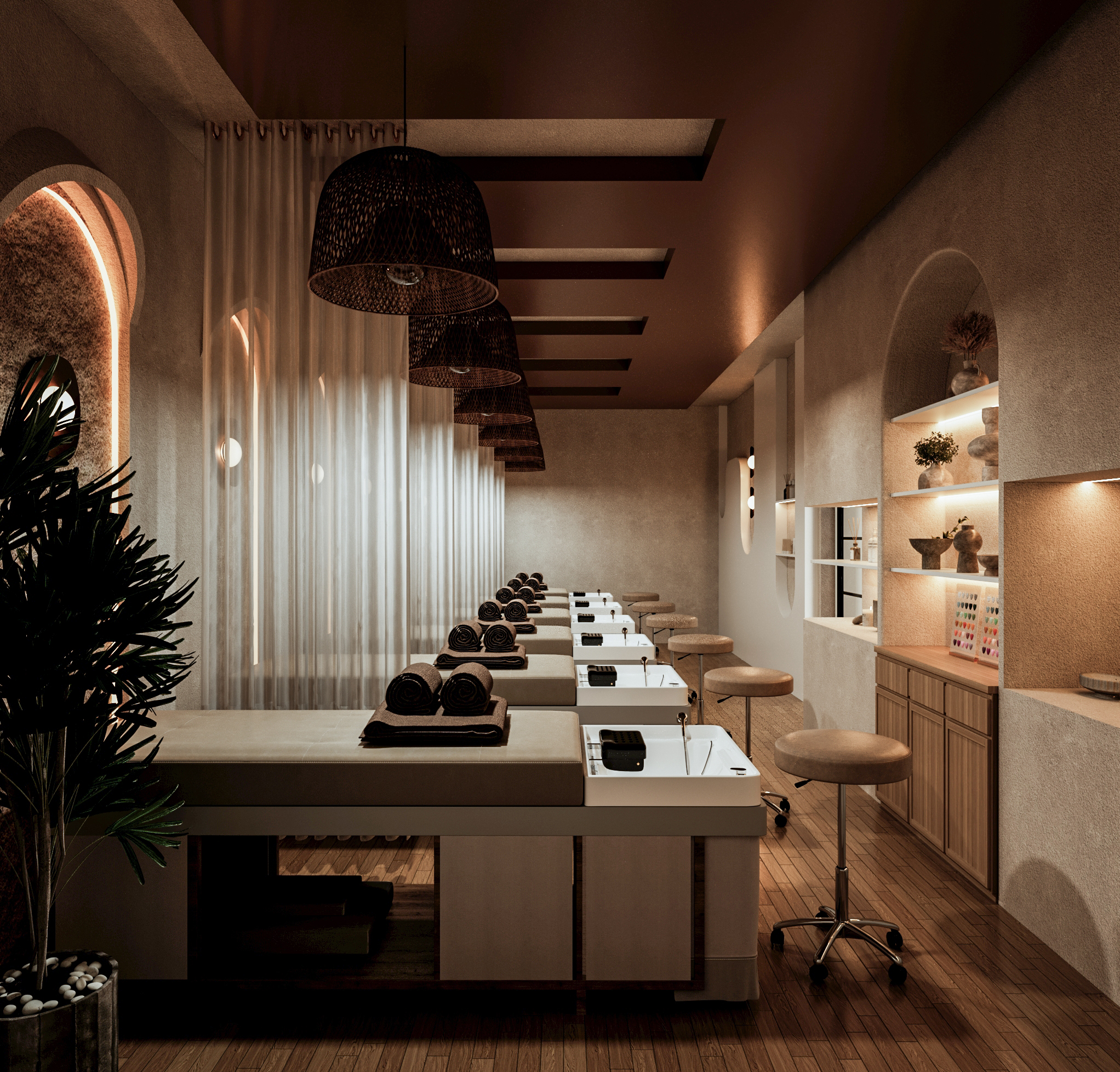 Trong thị trường nail tại Mỹ, quảng cáo có thể dừng nhưng hình ảnh không gian vẫn tiếp tục lan truyền. Một tiệm nail được thiết kế tốt sẽ: