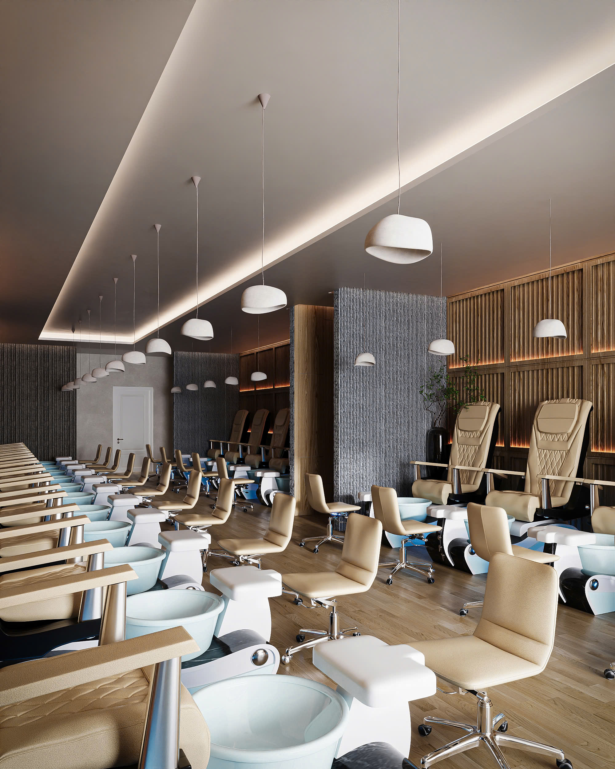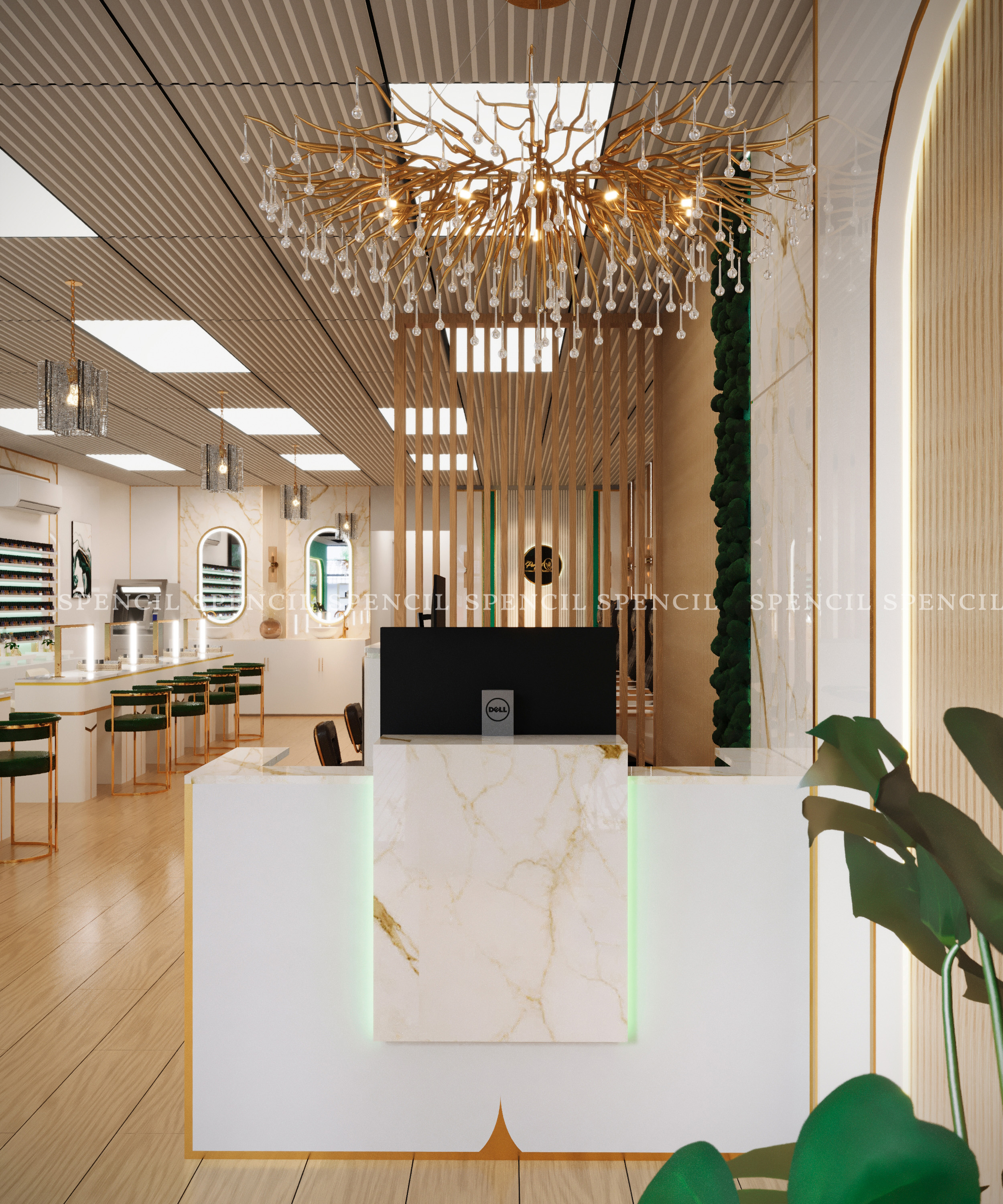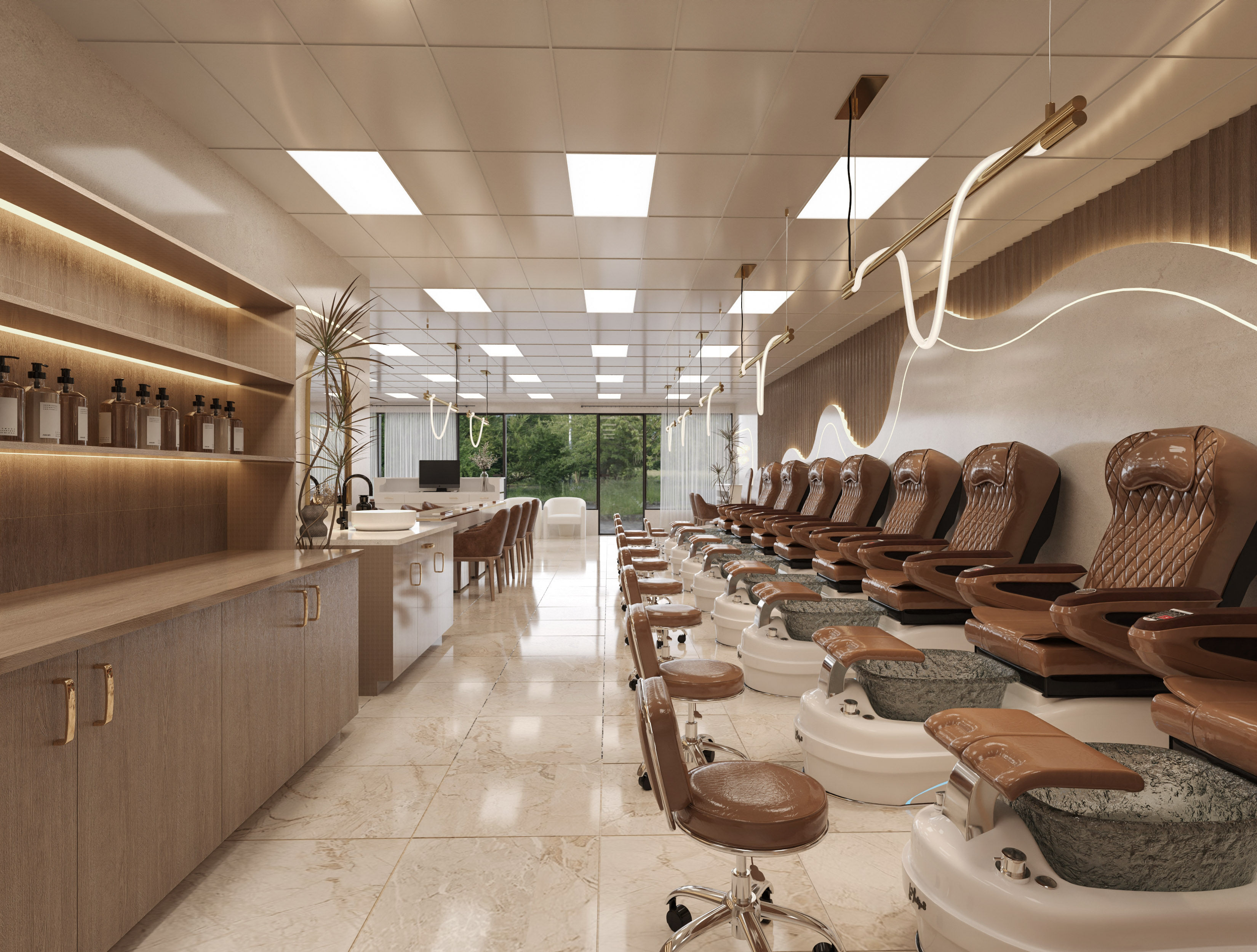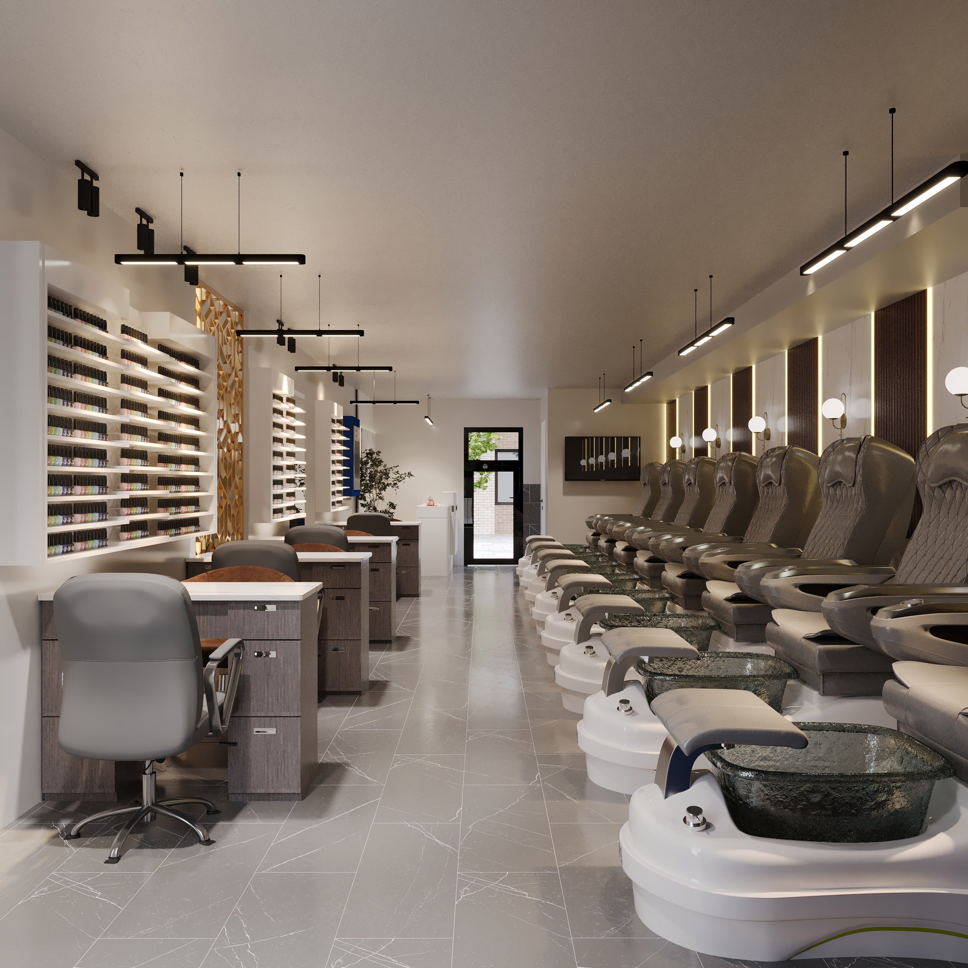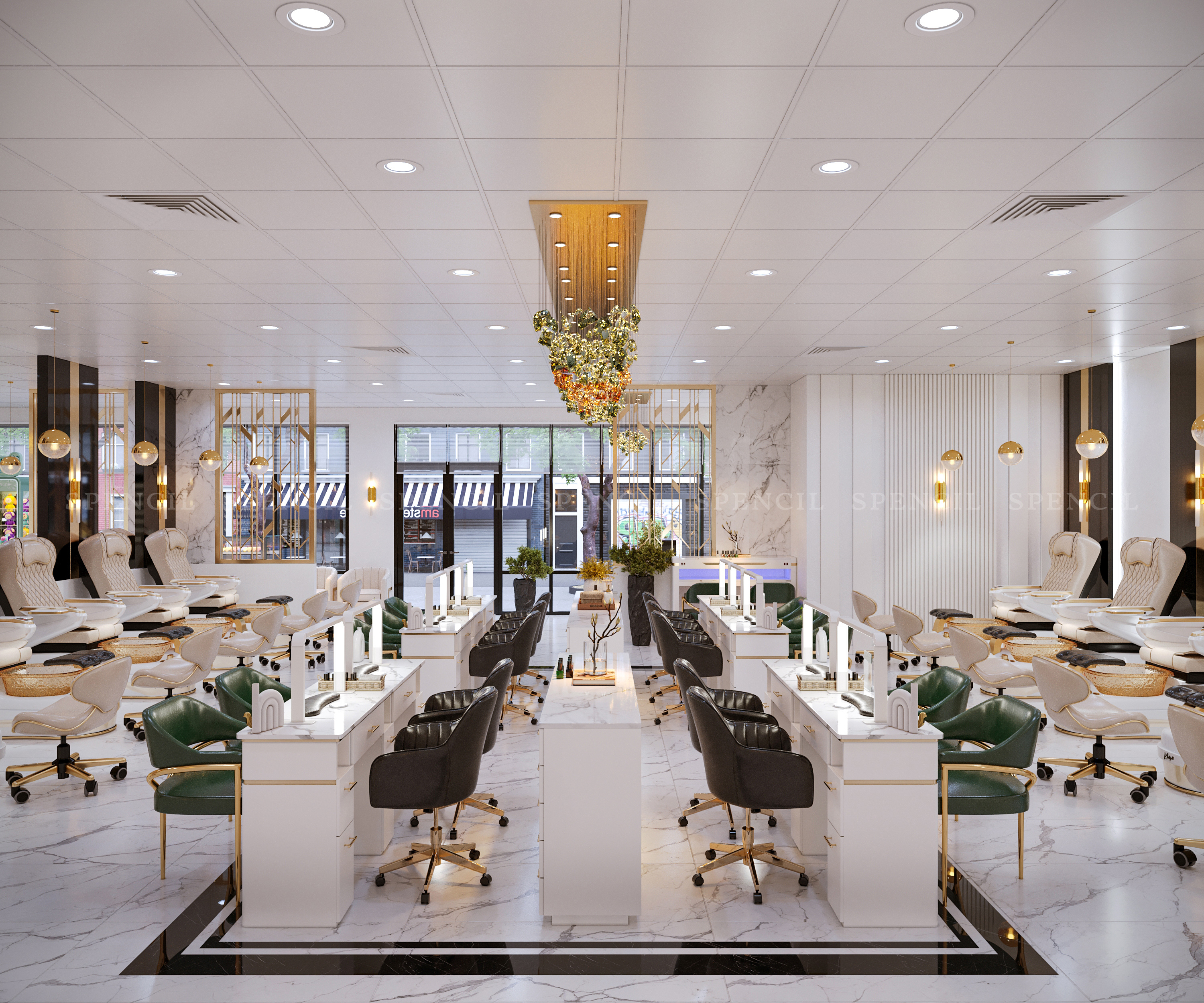 Spencil chuyên thiết kế nội thất tiệm nail đẹp cho chủ tiệm người Việt tại Mỹ, với tư duy thẩm mỹ hiện đại, hiểu hành vi khách hàng và tối ưu không gian để vừa lên hình đẹp, vừa vận hành hiệu quả.