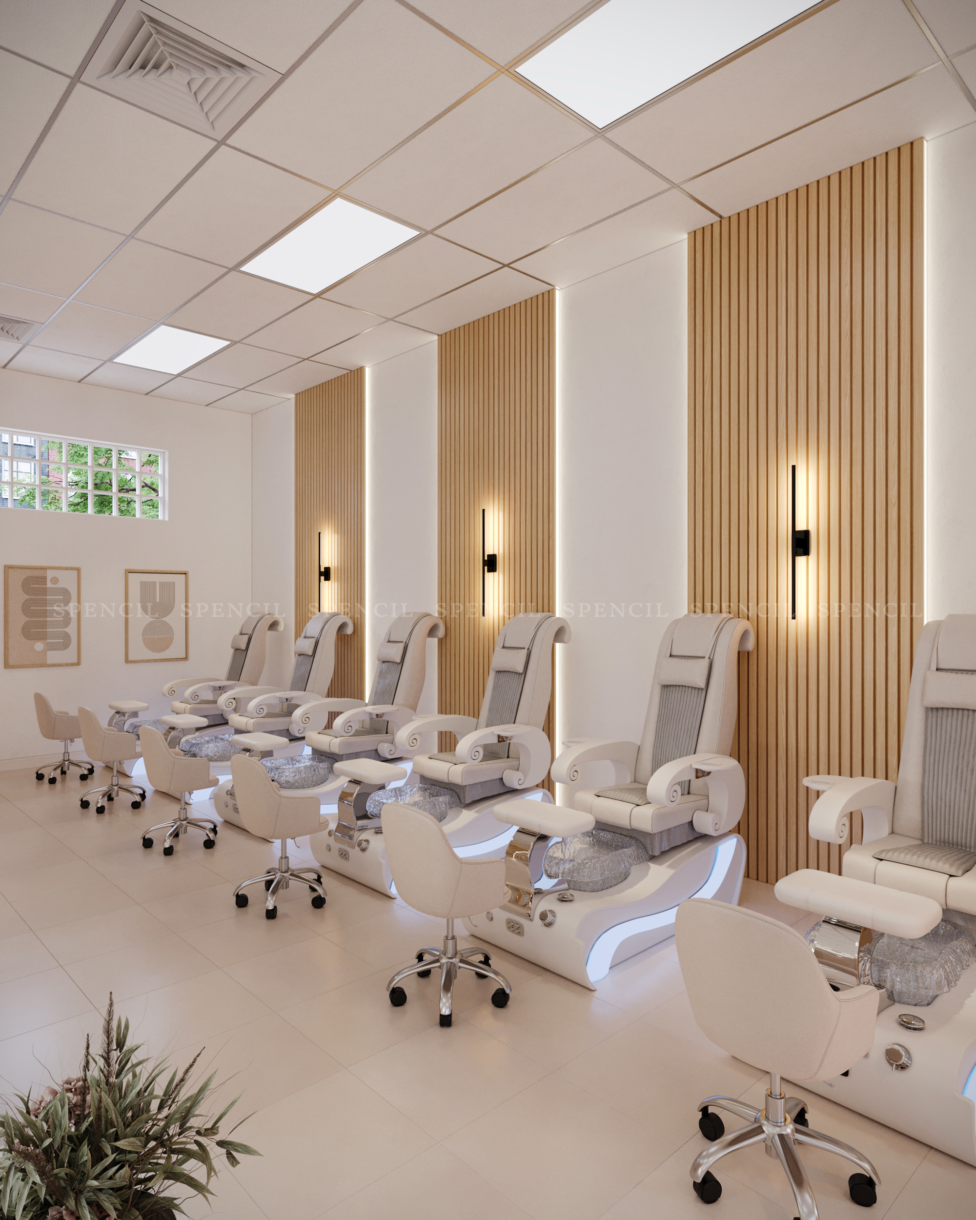 Dịch vụ thiết kế 3D tiệm nail giúp nhìn trước toàn bộ bố cục và điều chỉnh trước khi thi công.