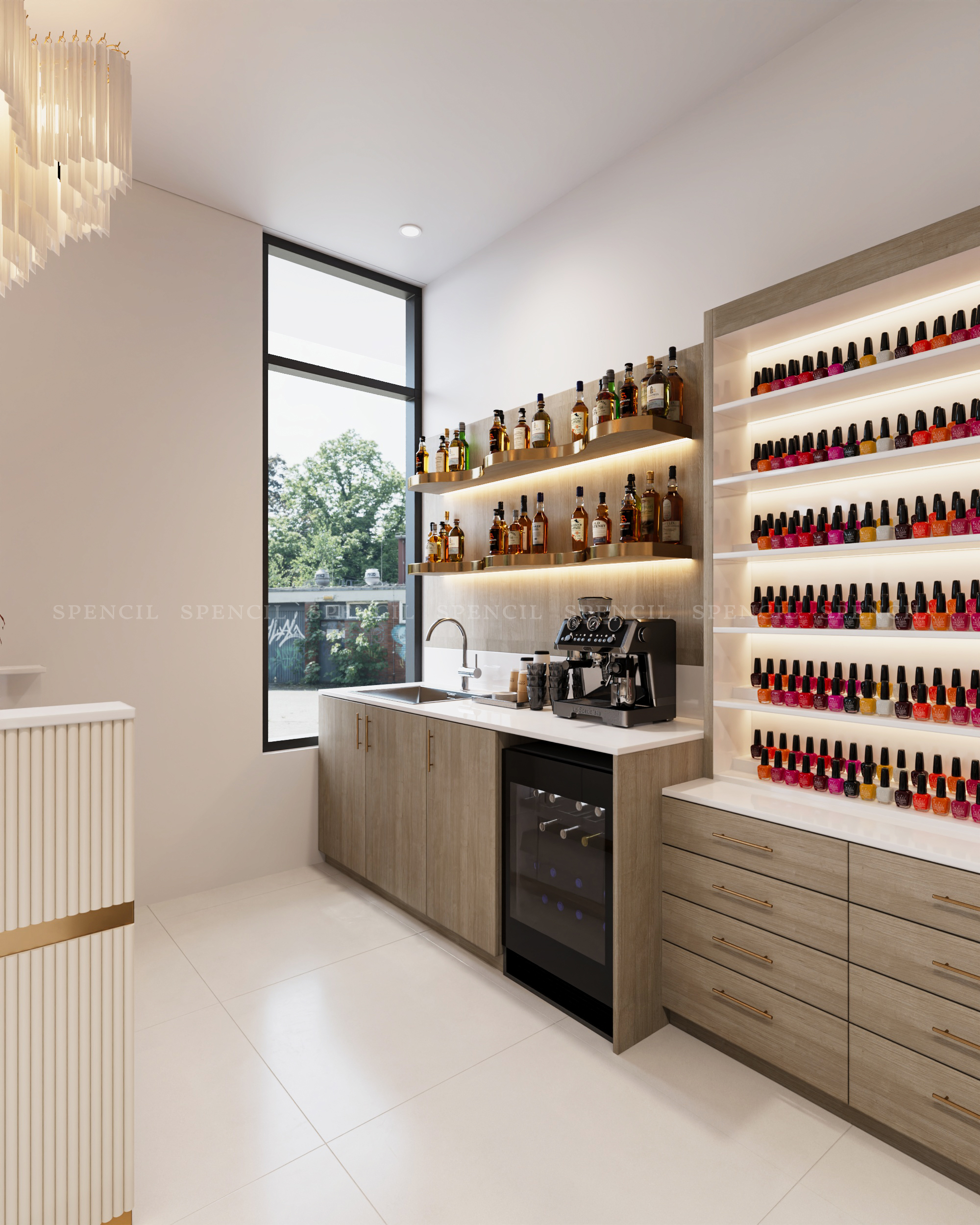 Phần lớn chủ tiệm khi lên kế hoạch thiết kế nội thất spa đều tập trung ngân sách vào khu vực dịch vụ: ghế pedicure, nail table, hệ thống thông gió, lighting tại trạm làm việc. Reception thường là phần được xử lý cuối cùng - sau khi ngân sách đã bị phân bổ gần hết.