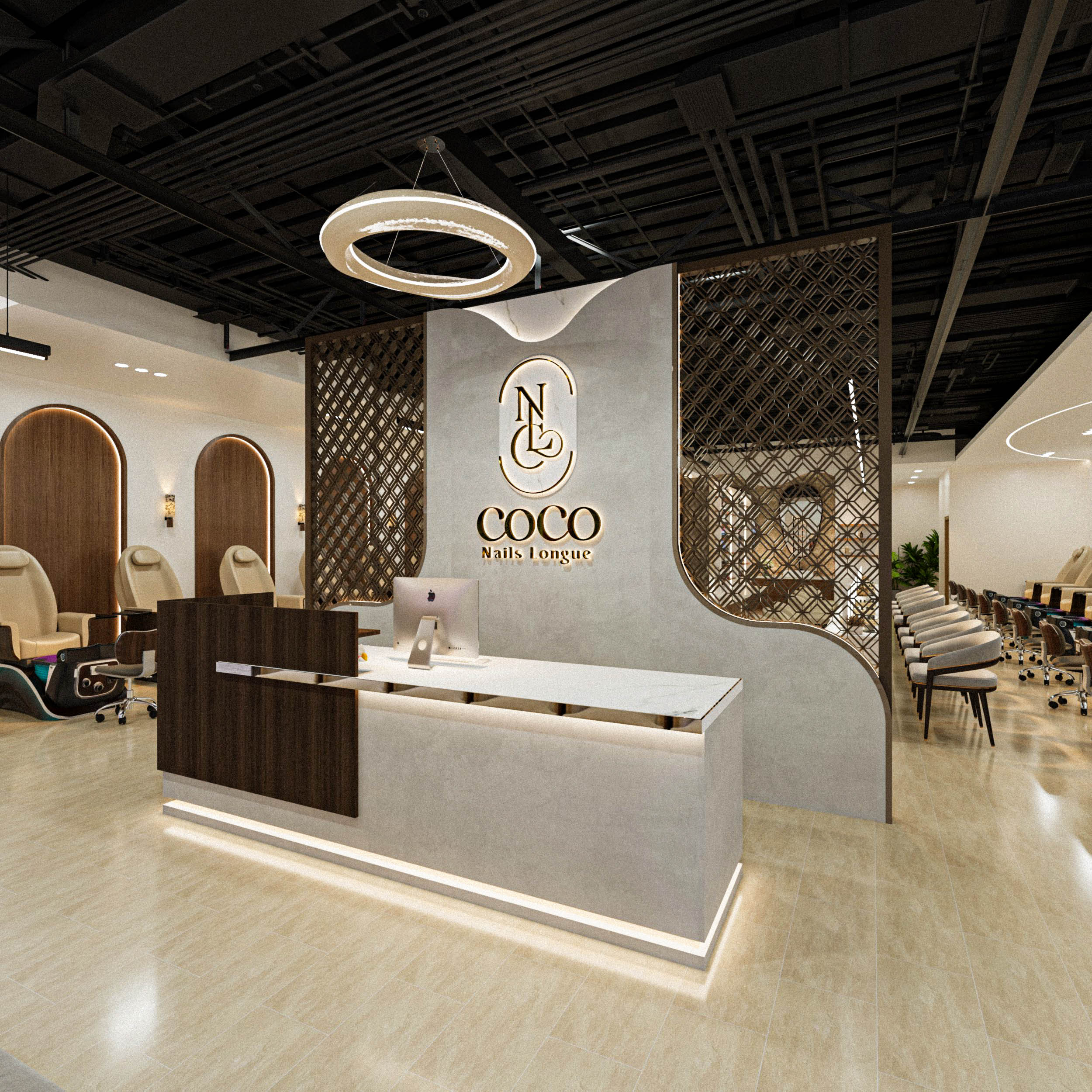 Thiết kế nội thất salon hiệu quả hướng dẫn luồng di chuyển của khách một cách tự nhiên: reception → khu chờ → trạm dịch vụ → checkout. Không có "điểm mù" khiến khách bối rối, không có góc khuất gây cảm giác lộn xộn.